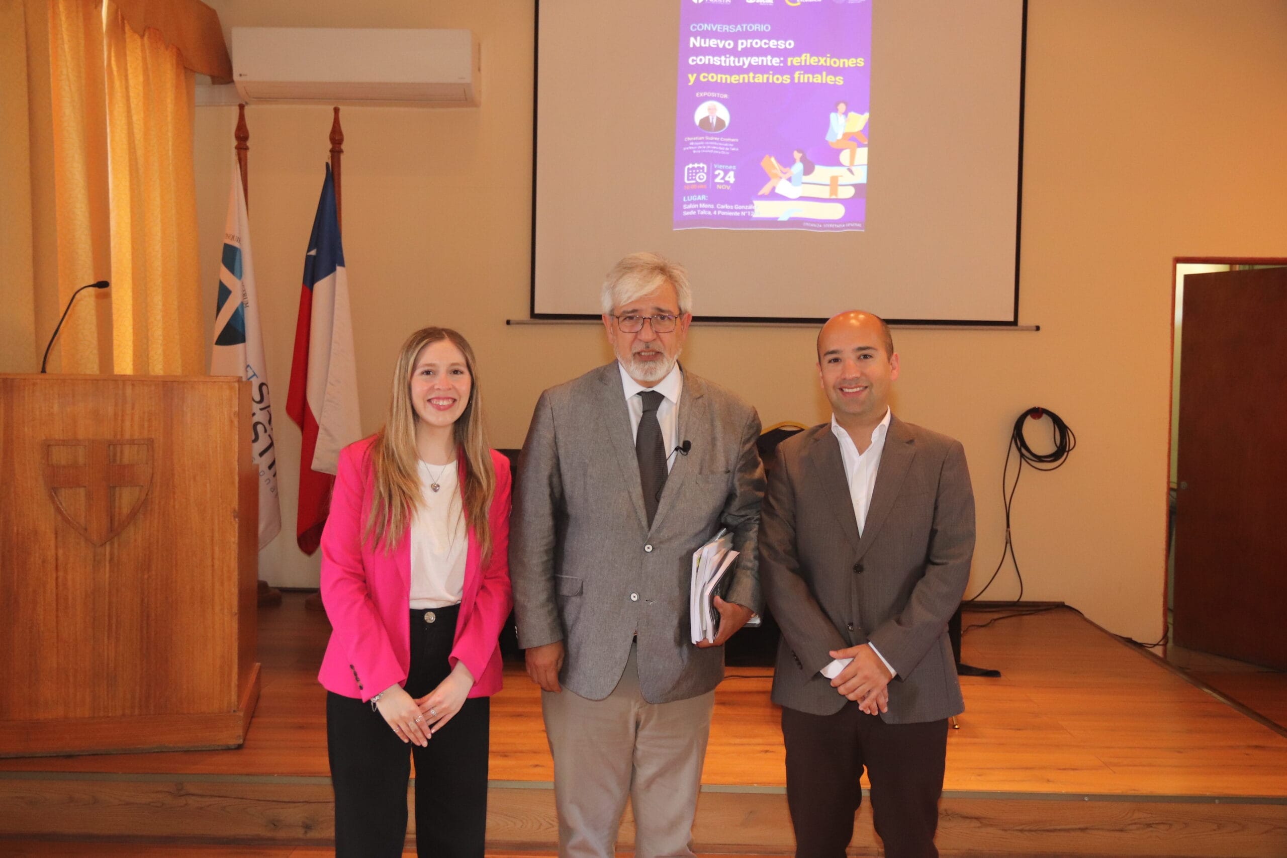 El pasado 22 de noviembre, en el salón Monseñor Carlos González Cruchaga de la sede Talca, se llevó a cabo un nuevo conversatorio constituyente, en el cual el abogado constitucionalista y político independiente, Christian Suárez, expuso su visión sobre la propuesta que deberá ser votada el próximo 17 de diciembre.